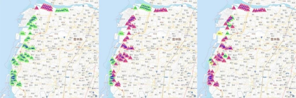 由此來看,自2000年政府開始補助風力發電示範起,由台電引領風力發電建設與市場在臺灣西部沿海各地展開,台電的「風力發電十年發展計畫」如今基本上皆已完工並仍在運作,其中四湖鄉就有十四座台電的陸域風電機組。2009年「再生能源發展條例」則清楚訂定國家的再生能源發展論述,大幅提升再生能源市場價值,自此之後,包含陸域風電、離岸風電、光電等建設,迅速進駐南台灣鄉村之中,吞噬土地並造成環境和經濟破壞,已有無數地方抗爭形成。我稍後將繼續詳細說明四湖鄉的陸域風機發展狀況,而目前我將首先說明四湖鄉的發展歷史如何形成現在地方居民的失望情緒。