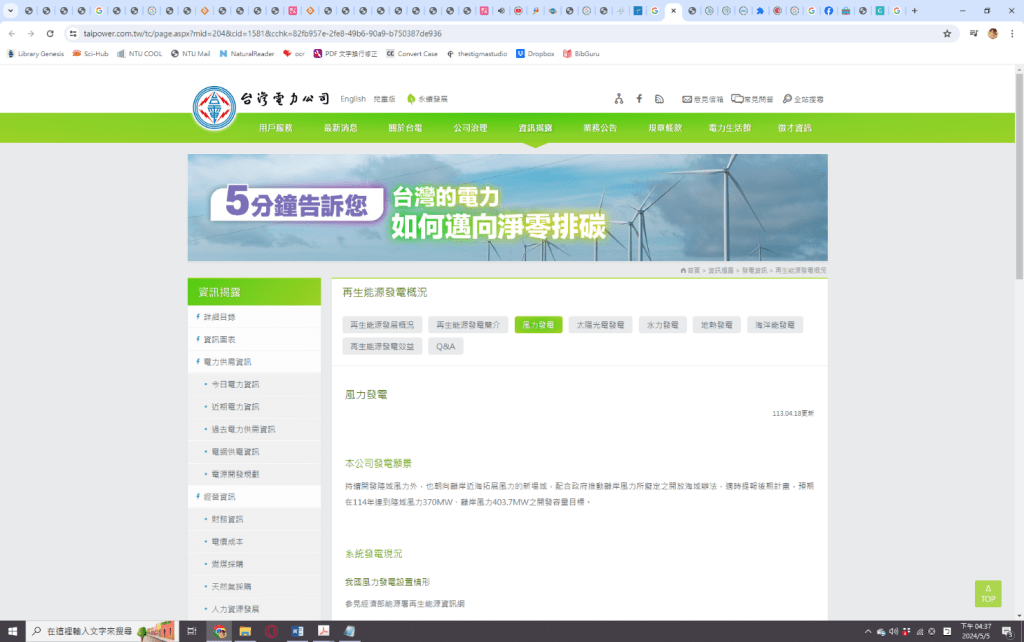 我們今年就是要追那個2025非核嘛,我們光電的進度是大概70%,但是風電整個落後,只有20%。會落後那麼多的原因是因為它的投資金額比較大,還有很多第一批外商,達德那些,他們都慢慢陸續在撤走,因為我們現在台電給風電的躉購費率下降了,所以風電不夠的工作現在變成要靠光電維持。……然後像我老家在桃園觀音藻礁,那邊現在已經有六根天然氣煙囪了,現在三階又要蓋四根,已經蓋到第三根了,但也是進度落後,因為之前也是很多爭議。……所以現在很多這個進度都要跑到光電這裡來,然後現在最關鍵的是公民電廠,現在有很多村子裡、社區協會等,他們就希望大家認股,我們公司算是開發商,能夠跟地主談的,那如果社區認股也有回饋的話,很多事情就會容易許多。(田野筆記,葉先生,2024/01/22)