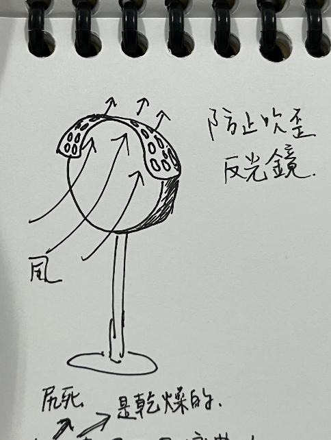 話題中突然出現的「風」把依婕召喚回修路中途,彼時維修大哥正在拆卸燈罩,看到依婕站在燈下,便出聲警告:「盡量不要抬頭。」(田野筆記,維修工人,2025/01/07)。維修大哥等依婕退後才拿起燈罩往柱子上敲了敲,細碎的粉塵漸漸飄下。維修結束後我們上前詢問,大哥說他在把燈罩裡的灰塵、小蟲子敲掉,而依婕剛剛站的那個位置是下風處,所以才叫他離開那邊。