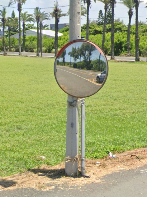 再往前走幾步我們才發現,道路分岔口處,時常偎身躲藏著反光鏡。因為反光鏡的特質,讓它的圓鏡幾乎成為一種視覺上的破洞,有時反射藍天、有時照映綠樹,它的位置一眼難以察覺。